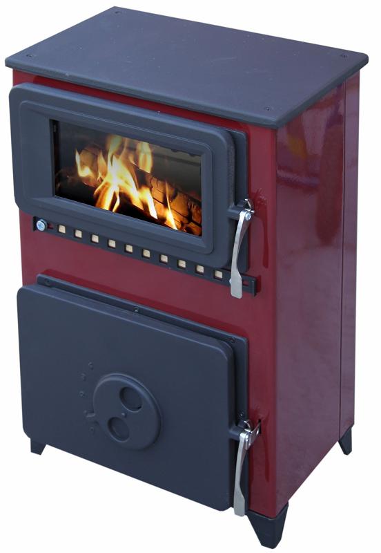 Malá univerzální kamna, se smaltovaným povrchem pro topení i vaření.