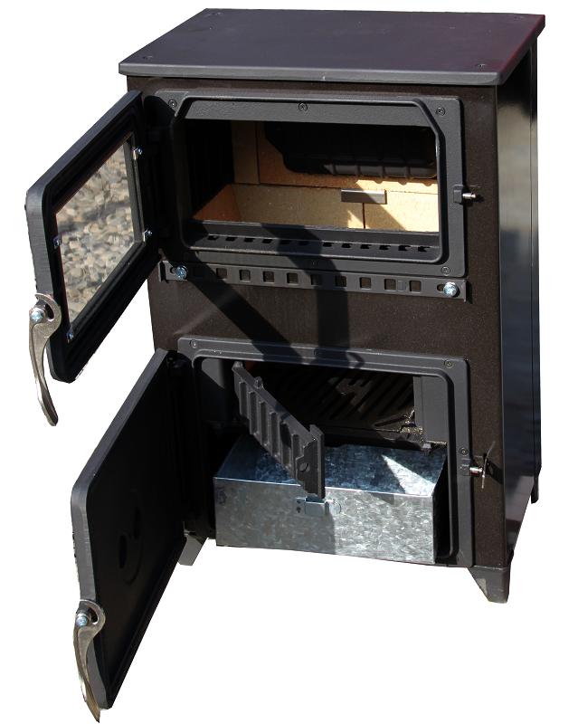 Horní část kamen je z litiny, a tak hned po zatopení dává příjemné teplo, stejně jako sporák přes plotnu.