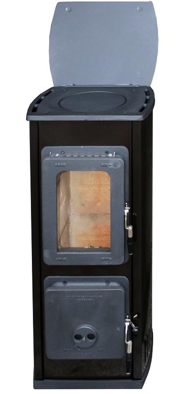 Přikládací a popelníkové dveře jsou z velmi odolné litiny, upravené odolnou barvou proti teplu a otěru.